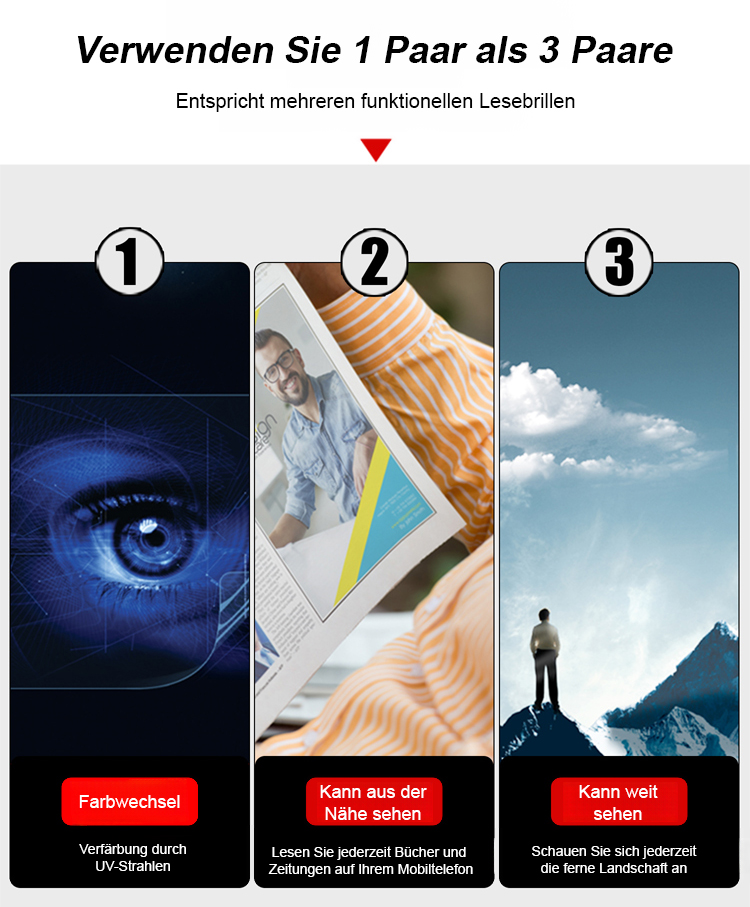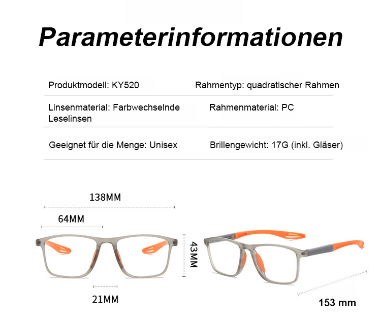【Photochromatische】Multifokale progressive Anti-Fishing-Sportlesebrille mit sechs Schutzfunktionen