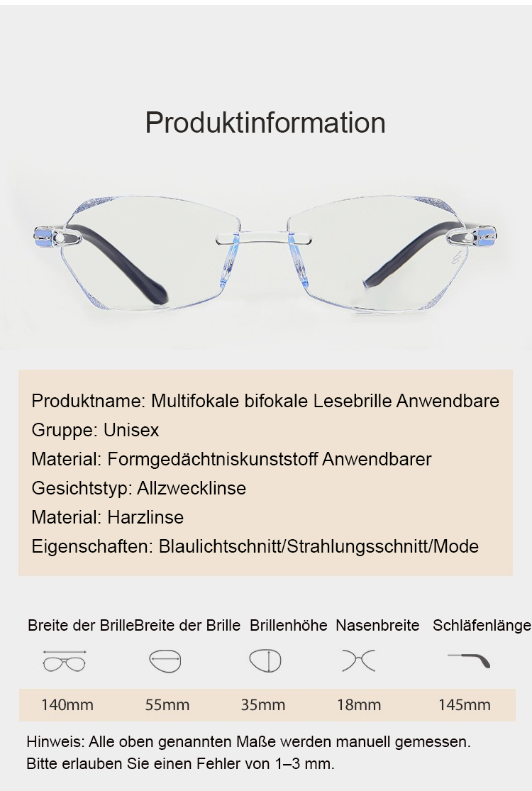 Brillen ohne Rahmen zum Schutz vor Blaulicht beim Lesen