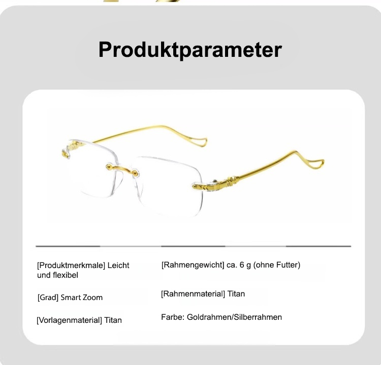 Intelligente, farbwechselnde, ultraklare, randlose Presbyopiebrille mit Zoomfunktion